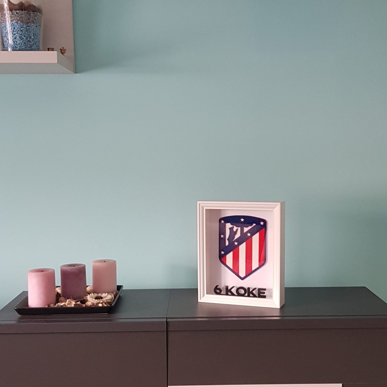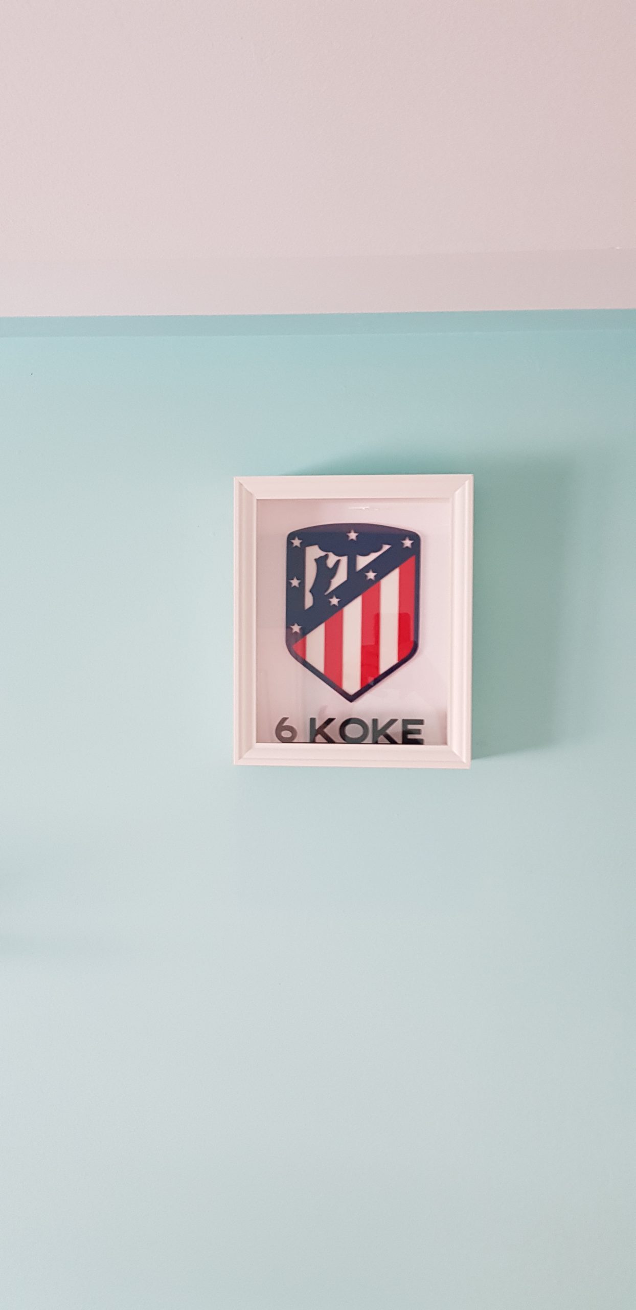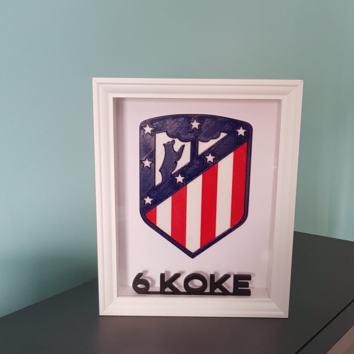 Regala este cuadro personalizado con nombre a elegir y el escudo del Atlético de Madrid.