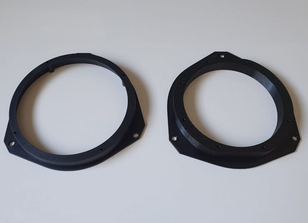 Replicamos la zona de la pieza que se atornilla en el panel de la puerta y la adaptamos para poder atornillar los nuevos altavoces.